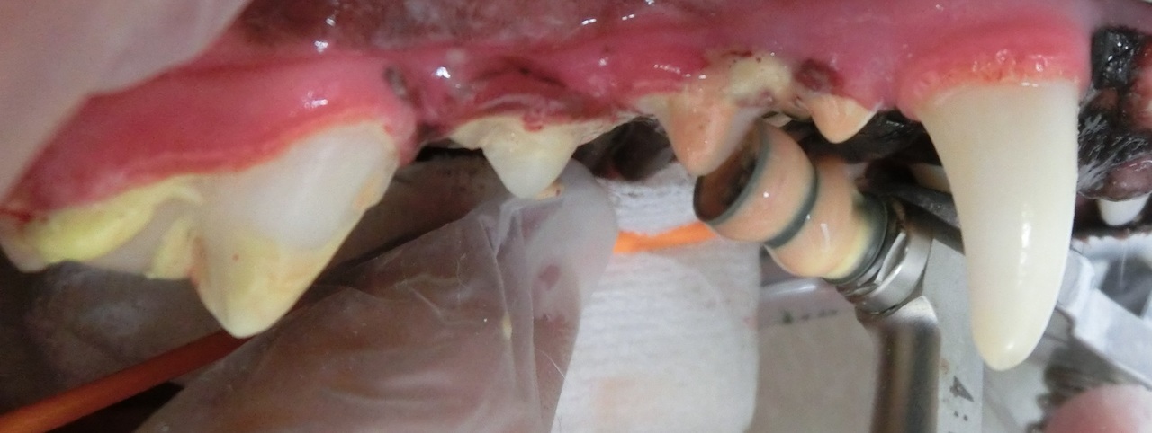 全身麻酔下で口腔レントゲン検査を行い、歯周病に伴う歯槽骨吸収は認められなかったため、スケーリング(歯石除去)・ルートプレーニング(歯根の清掃)・ポリッシング(歯の研磨)を行いました。